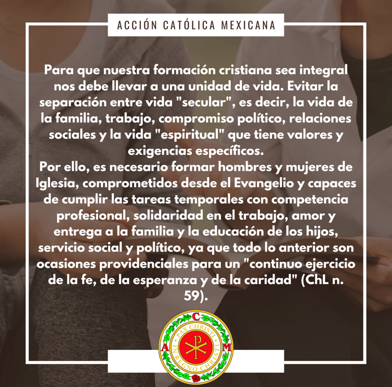 Intensificar la formación integral de todos los militantes, para que respondan eficazmente a su vocación y cumplan responsablemente su llamado a ser discípulos y misioneros de Jesucristo.