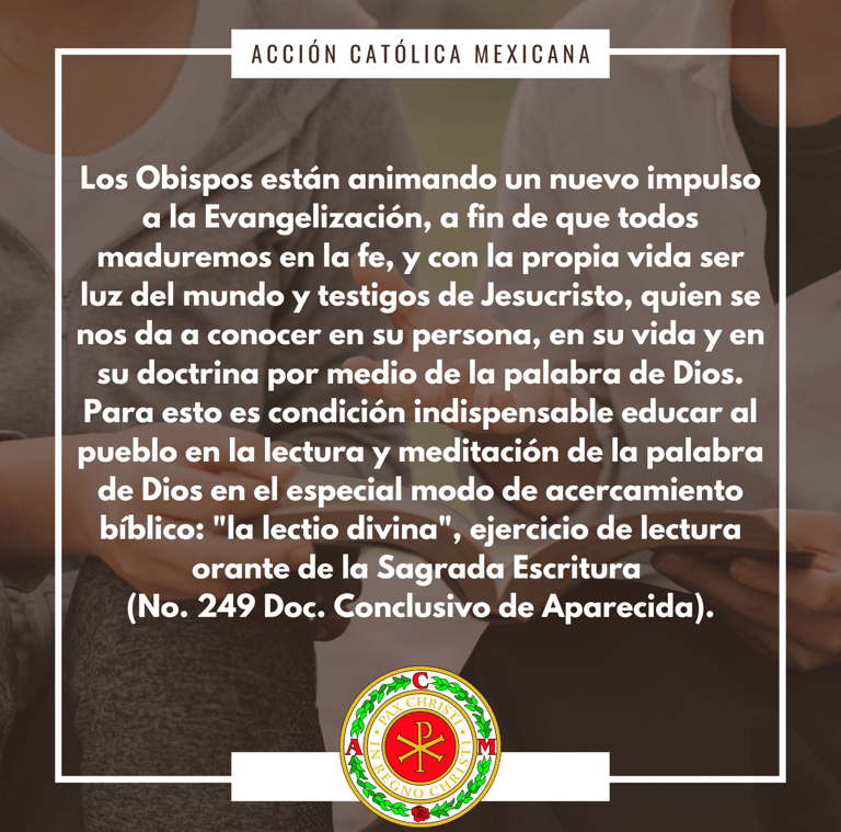 a) La lectura y meditación de la Palabra de Dios y de la Iglesia, que ella se convierta en alimento para que, por la propia experiencia, se entienda que la palabra de Jesús es espíritu y vida (lectio divina).