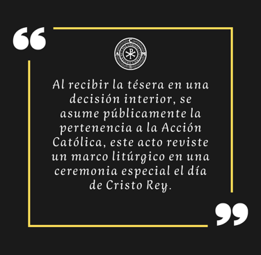 Al recibir la tésera en una decisión interior, se asume públicamente la pertenencia a la Acción Católica, este acto reviste un marco litúrgico en una ceremonia especial el día de Cristo Rey.