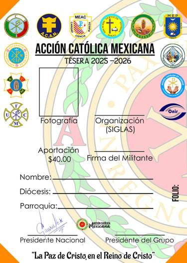 Para la ACM la tésera es la expresión sensible de algo inmaterial, en ella están sintetizados todos los ideales, todos los anhelos, todas las ansias de aquellos que se entregan a la misión de establecer la Paz de Cristo en el Reino de Cristo.